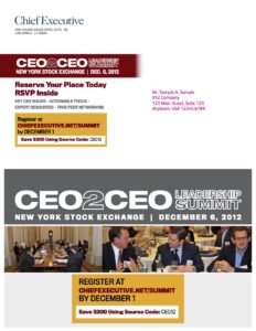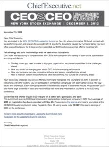 - Generate event date and theme awareness among target CEOs through a targeted, strategic use of Chief Executive list, online and print assets