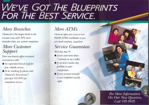 - Under the theme “The Best in Banking Begins with New Quarters”, the program was segmented into three 30-day periods and included telemarketing, three waves of direct mail, in-branch point of sale merchandising color coded to each period of the 90-day cycle, color-coded collateral, premiums, on-site celebration events at new branches, and a special employee training and incentive program.